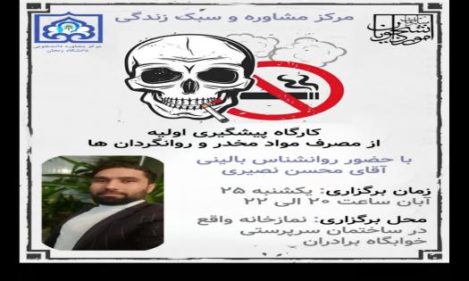 کارگاه پیشگیری اولیه از مصرف مواد مخدر و روانگردان ها (ویژه برادران)